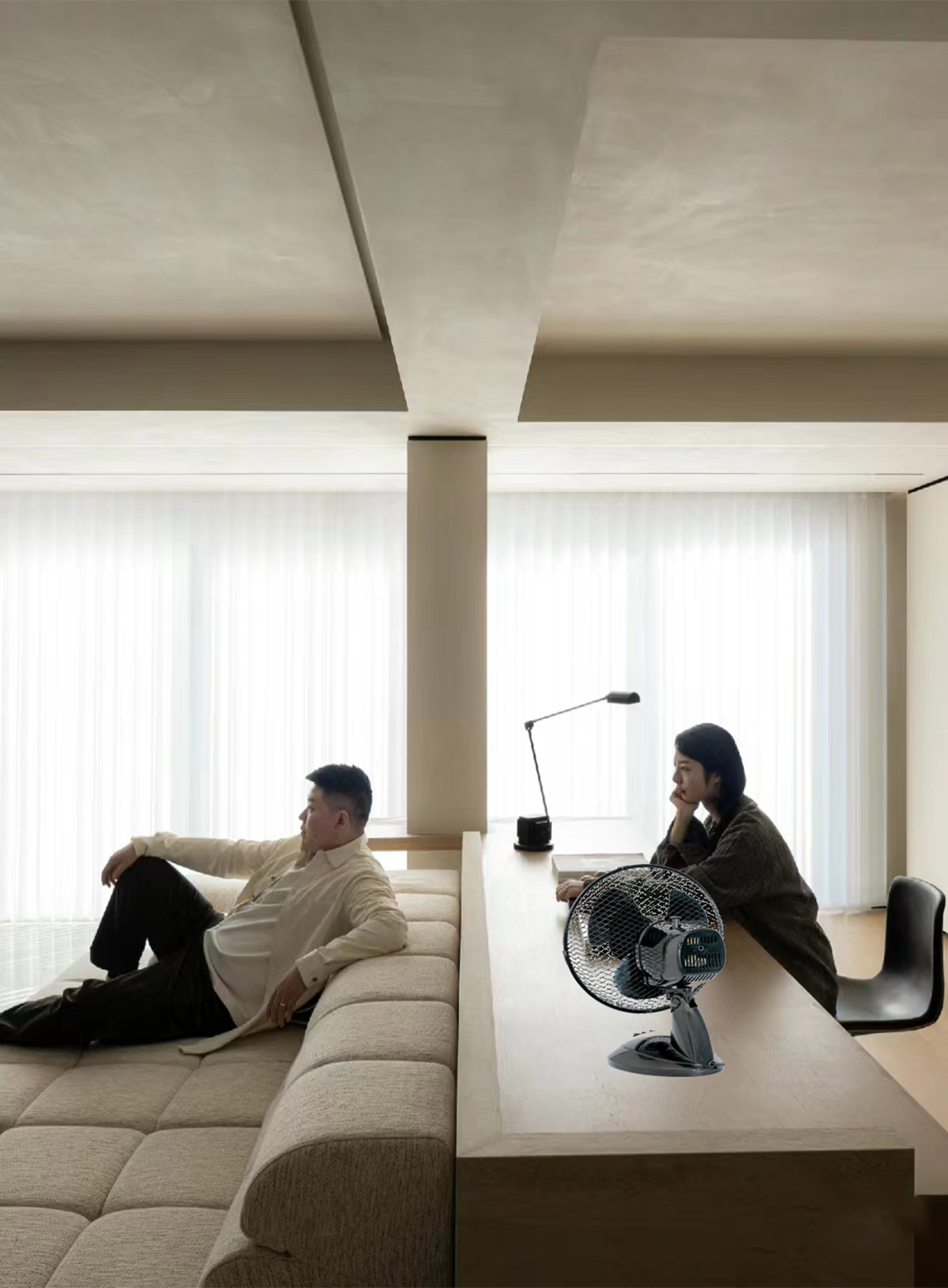 2.Living Rooms: Table fans can be placed on coffee tables or end tables in living rooms to improve air circulation and create a cooling effect. They help distribute airflow in larger spaces, making them more comfortable for relaxation and leisure activities.